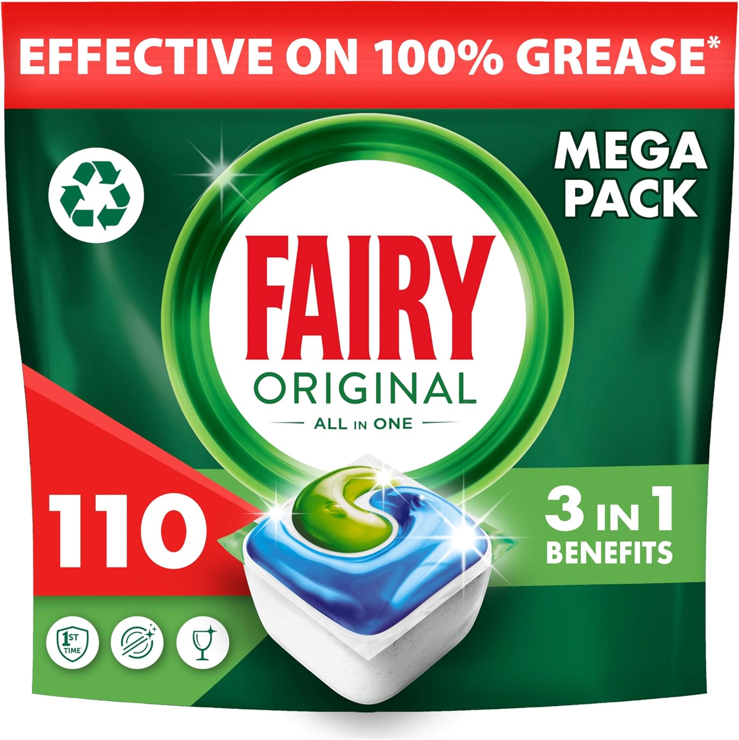 Fairy All-In-1 Dishwasher Tablets Bulk, Fairy Dishwasher Tablets, 110 Tablets, Original, Effective Even On Dried-On Grease, Dishwasher Tablets Fairy