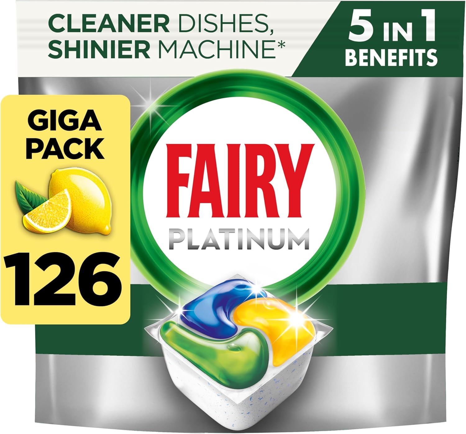 Fairy Platinum Complete Lemon Dishwasher Tablets 126ct, Fairy Dishwasher Tablets Platinum, Dishwasher Tablets Bulk, Pack of 6 (21 pod per pack)