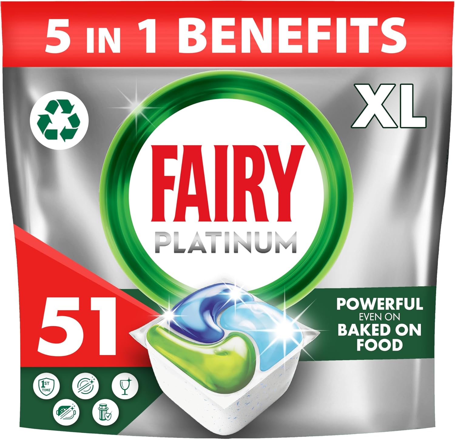 Fairy PlatinumAll-In-1 Dishwasher Tablets Bulk, 51 Tablets, Original, XL Pack, With Greasy Filter & Rinse Aid Action
