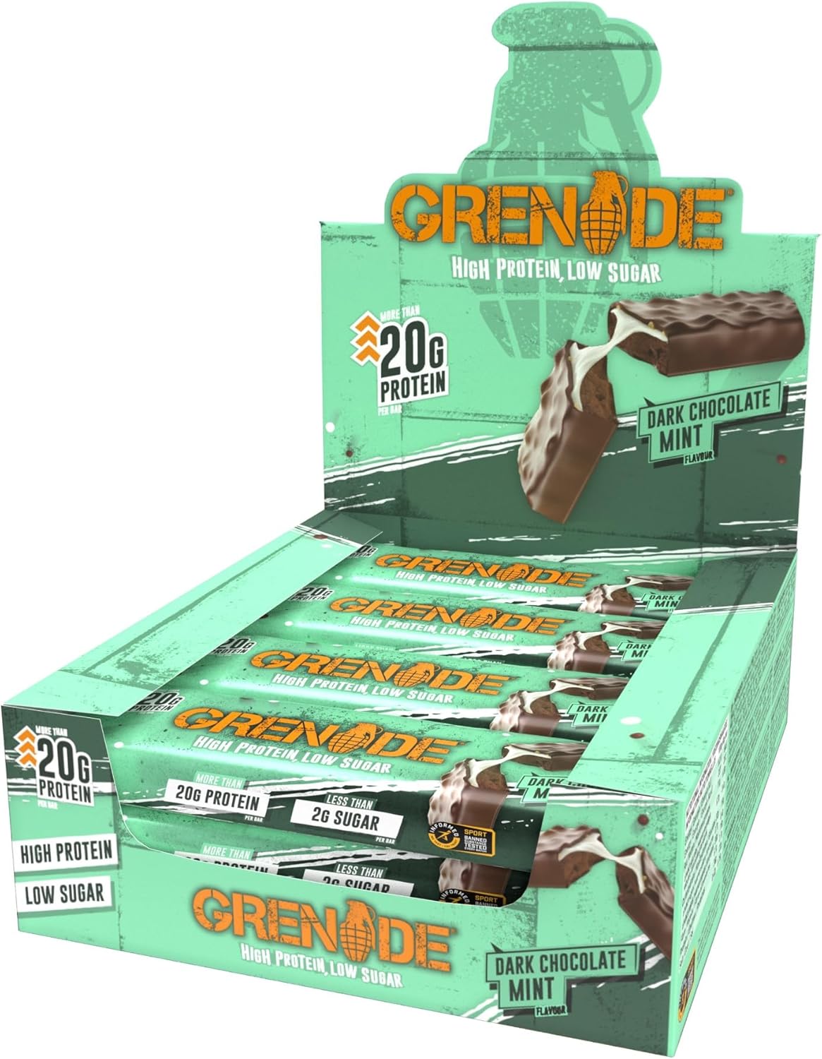 Grenade High Protein, Low Sugar Bar – Dark Chocolate Mint, 12 x 60 g