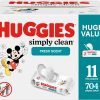 Huggies Simply Clean Fragrance-Free Baby Wipes, Unscented Diaper Wipes, 11 Flip-Top Packs (704 Wipes Total)