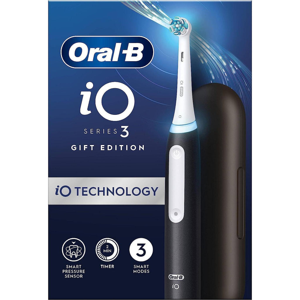 Oral-B iO3 Electric Toothbrush 1 Toothbrush Head & Travel Case, 3 Modes With Teeth Whitening Black