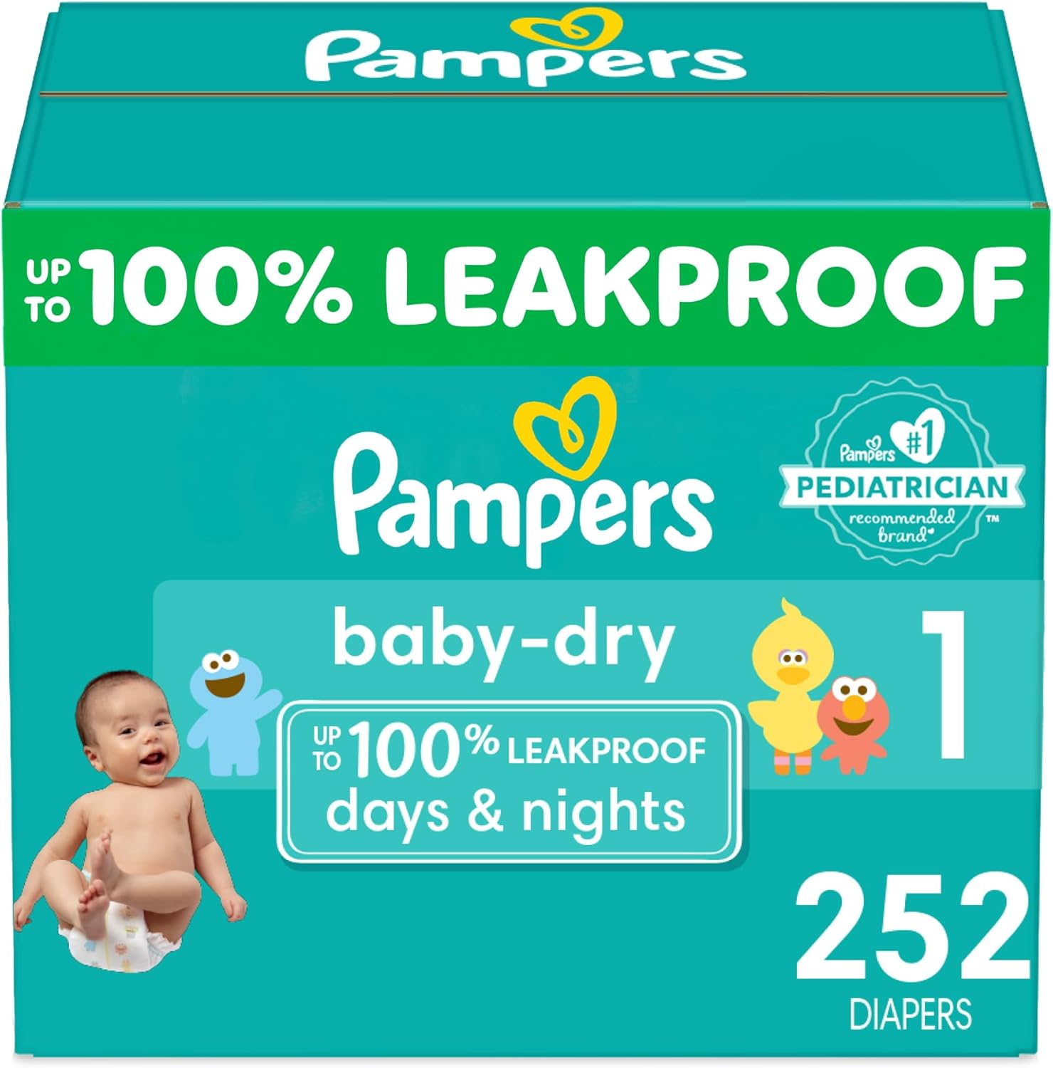 Pampers Baby Dry Diapers – Size 1, One Month Supply (252 Count), Absorbent Disposable Diapers