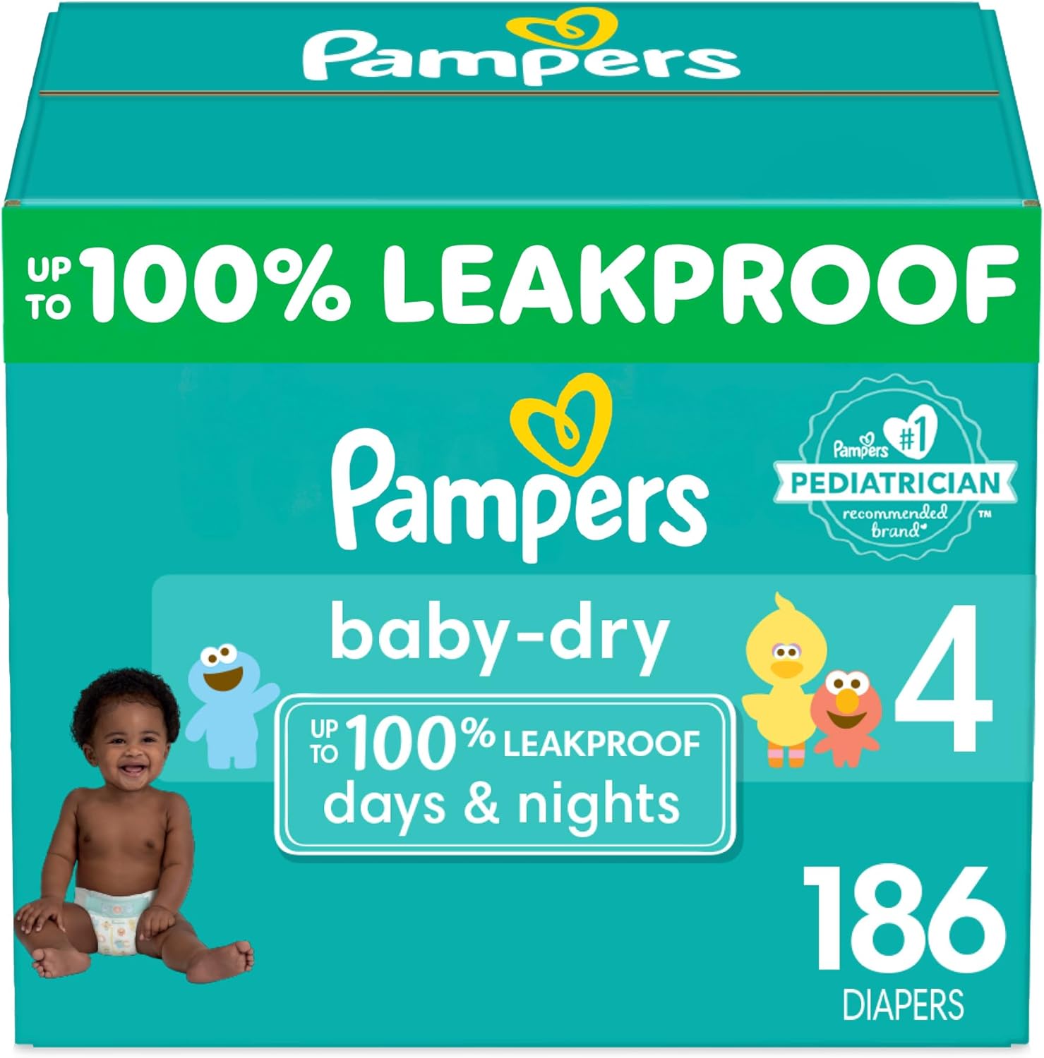 Pampers Baby Dry Diapers – Size 4, One Month Supply (186 Count), Absorbent Disposable Diapers