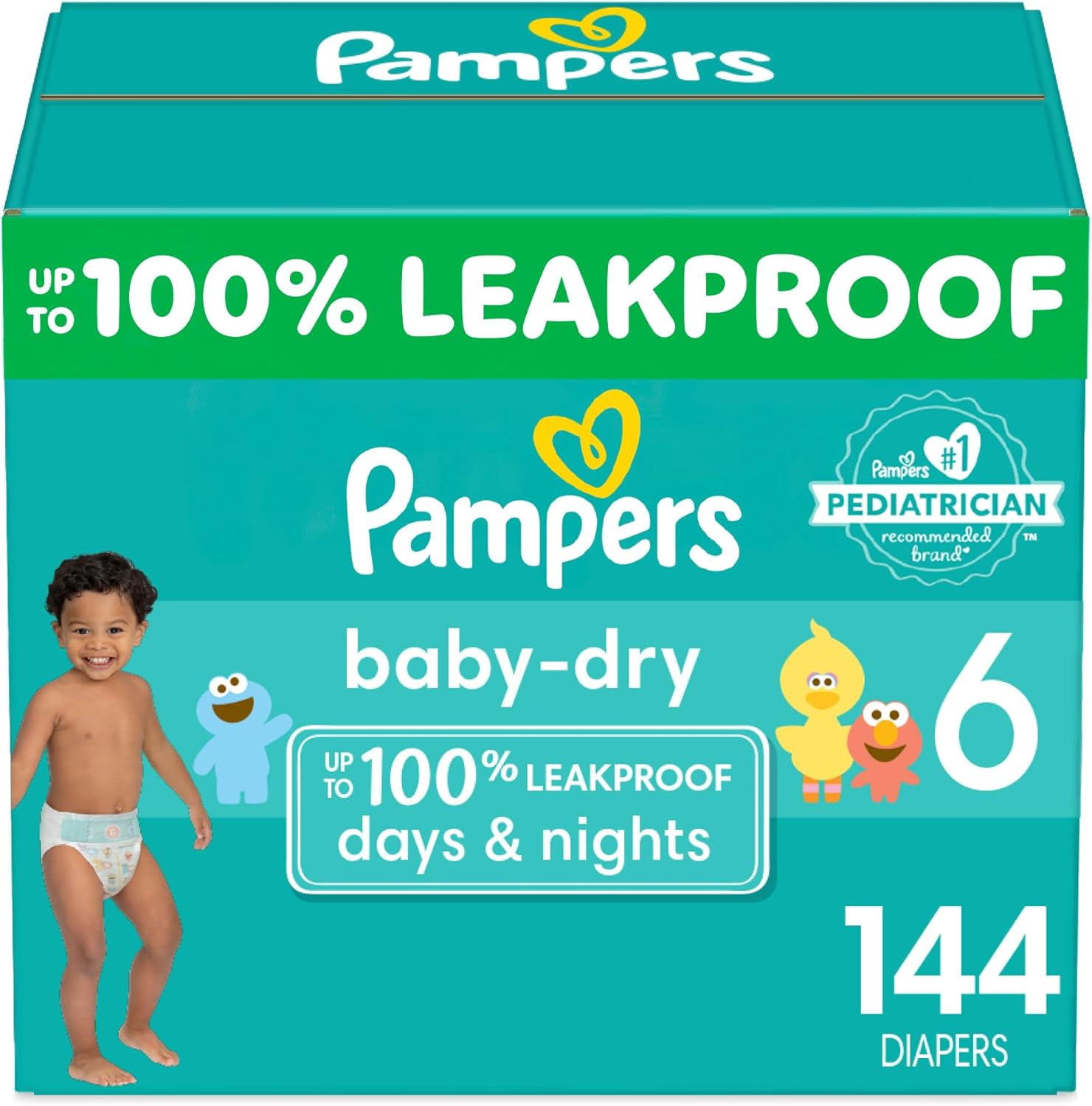 Pampers Baby Dry Diapers – Size 6, One Month Supply (144 Count), Absorbent Disposable Diapers