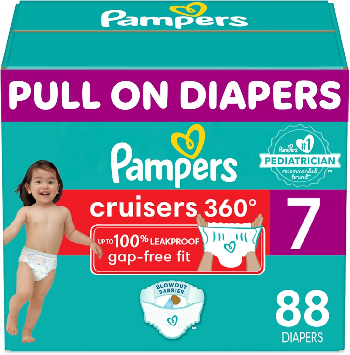 Pampers Cruisers 360 Diapers – Size 7, One Month Supply (88 Count), Pull-On Disposable Baby Diapers, Gap-Free Fit