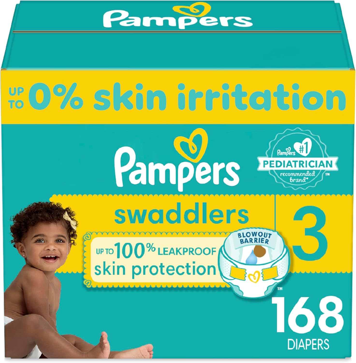 Pampers Swaddlers Diapers – Size 3, One Month Supply (168 Count), Ultra Soft Disposable Baby Diapers