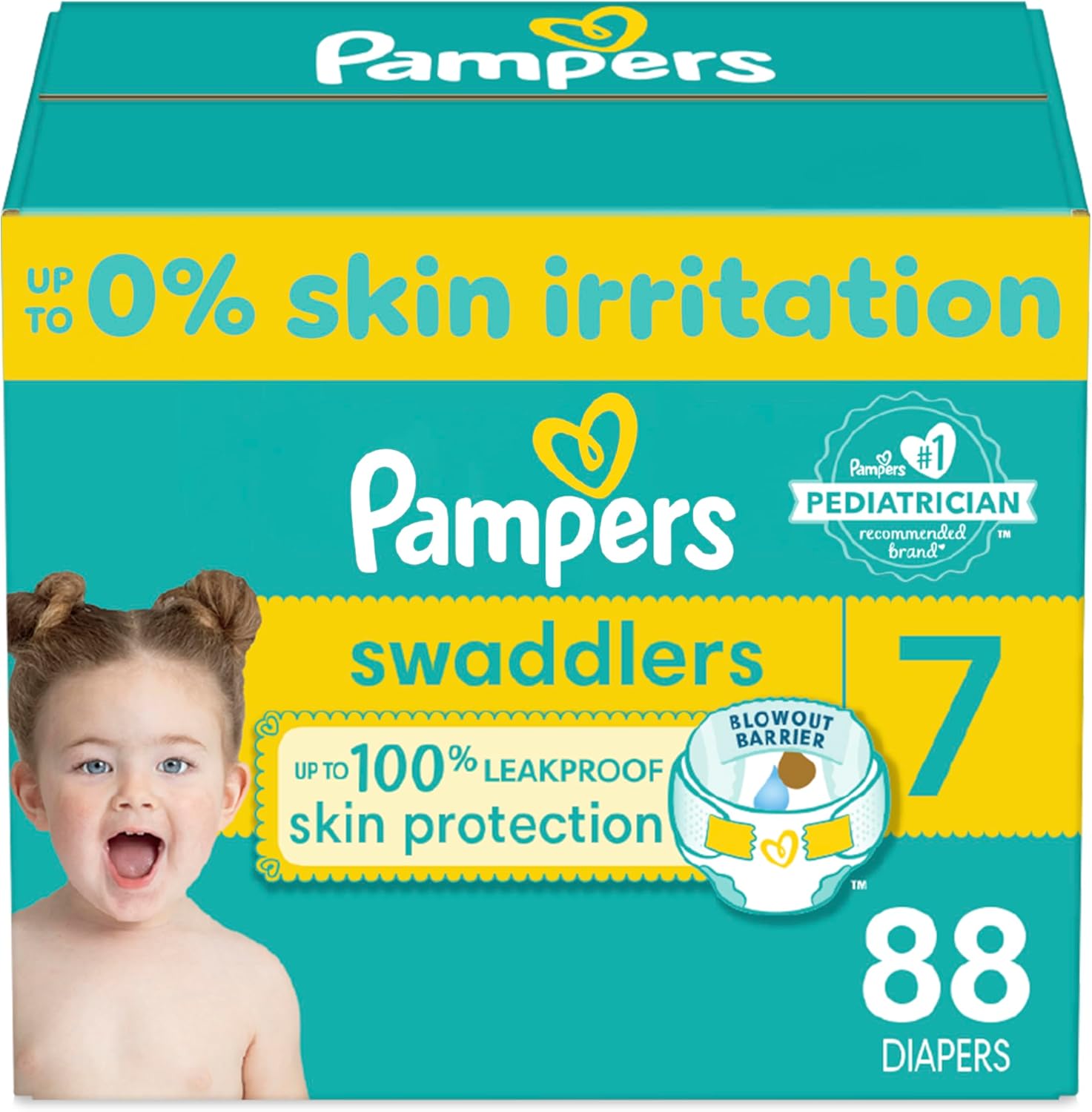 Pampers Swaddlers Diapers – Size 7, One Month Supply (88 Count), Ultra Soft Disposable Baby Diapers