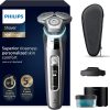 Philips Shaver S9000 Prestige, wet and dry shaver, Bright Chrome, Lift & Cut and SkinIQ technology, precision trimmer, cleaning pod and premium storage pouch, model SP9841/32