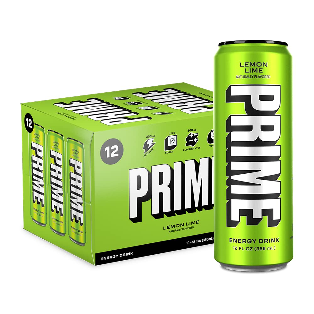 PRIME Energy LEMON LIME | Zero Sugar Energy Drink | Preworkout Energy | 200mg Caffeine with 355mg of Electrolytes and Coconut Water for Hydration| Vegan | Gluten Free |12 Fluid Ounce | 12 Pack