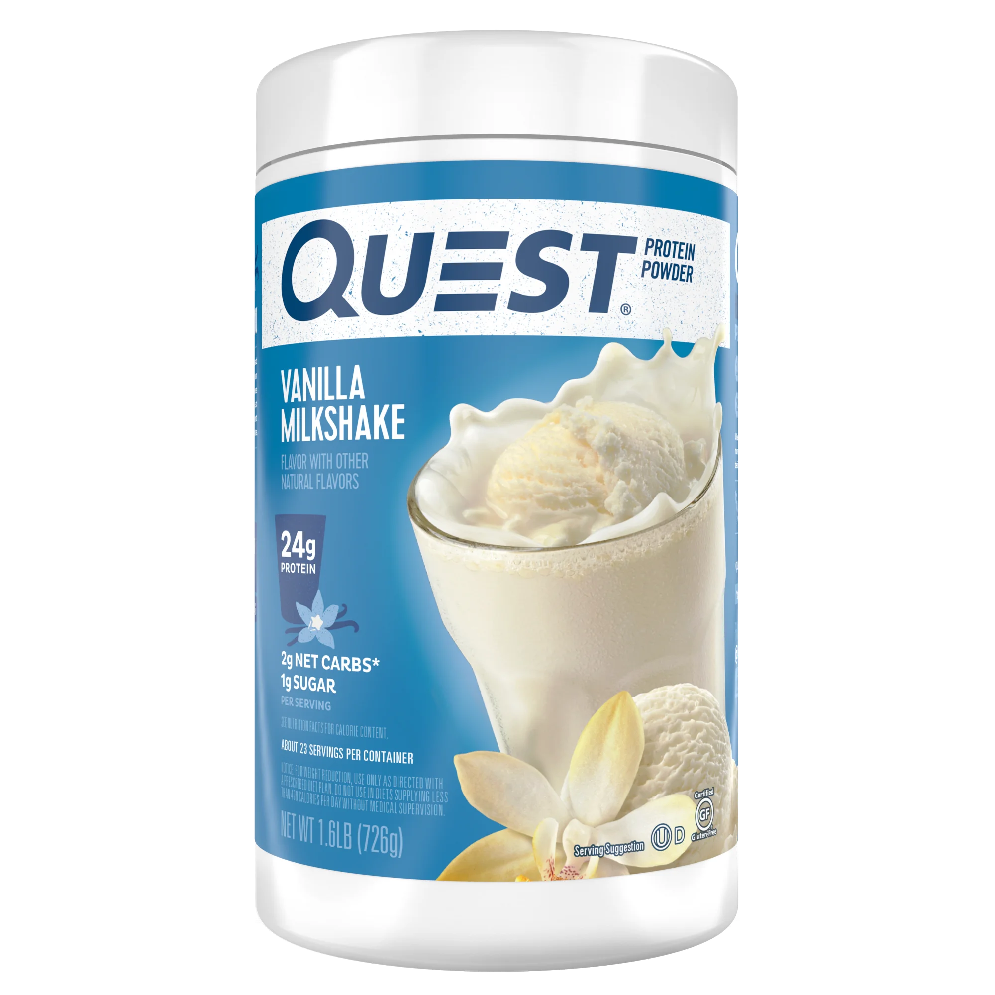 Quest Nutrition Vanilla Milkshake Protein Powder, 24g of Protein, 1g of Sugar, Low Carb, Gluten Free, 1.6 Pound, 23 servings