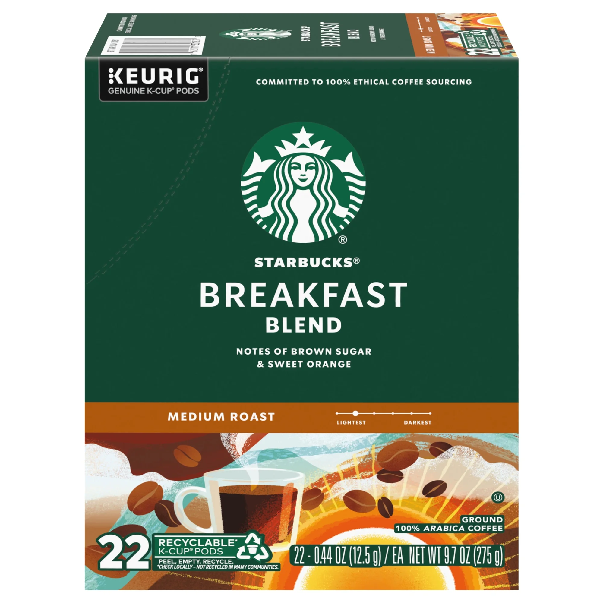 Starbucks Breakfast Blend, Medium Roast Coffee, Keurig K-Cup Single Serve Coffee Pods, 22 Count