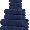 Tens Towels Pack of 8 Towels Set, 2 Extra Large Bath, 2 Hand, 4 Washcloths, 100% Cotton, Lighter Weight, Quicker to Dry, Super Absorbent, Perfect for Bathroom, Black
